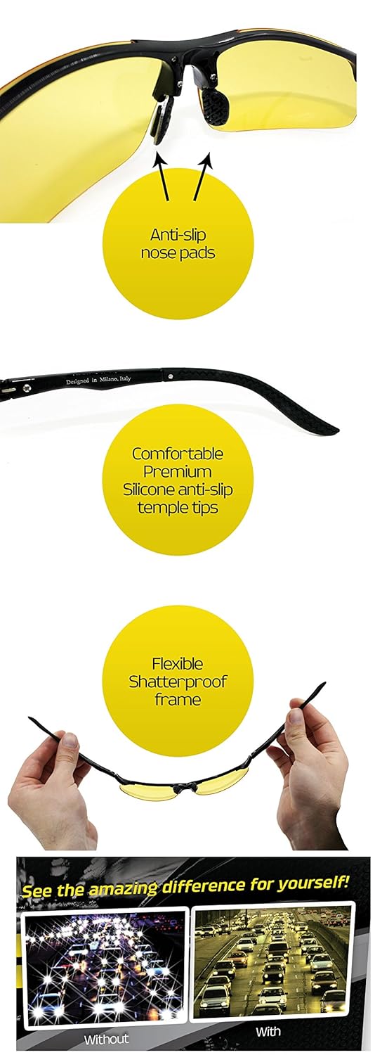 - STYLISH DESIGN makes Knight Visor glasses a favorite for drivers, sport athletes, motorcycle riders. The frame, Designed in Milano, epitomize Italian elegance and ingenuity.
